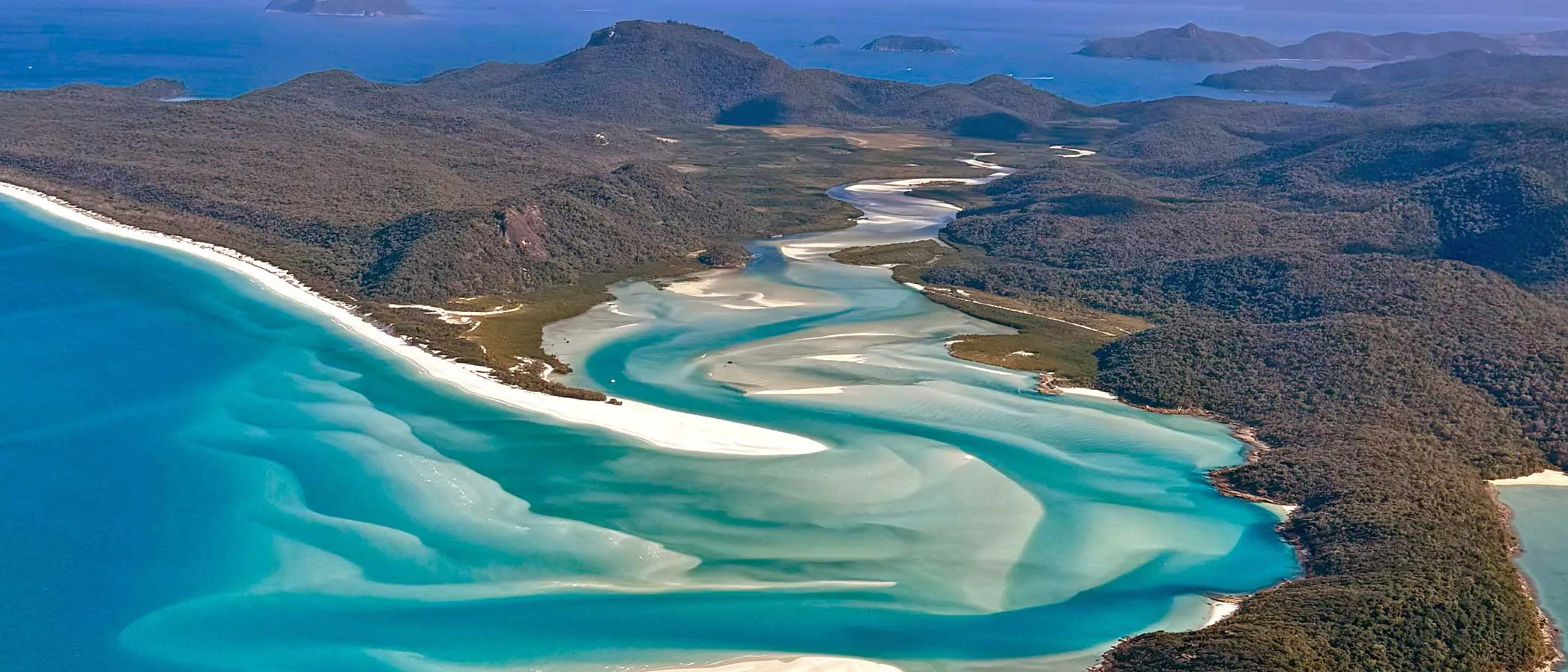 Stretching for 7 kilometers along Whitsunday Island, Whitehaven Beach is pure, pristine nature. Its sand is 98.9% pure silica, which gives it a brilliant, near-luminescent white color and keeps it cool to the touch. The iconic view is from Hill Inlet, where the shifting tides create a mesmerizing fusion of white and turquoise swirls.